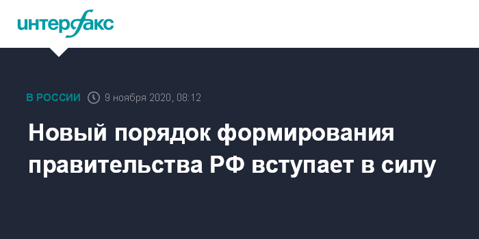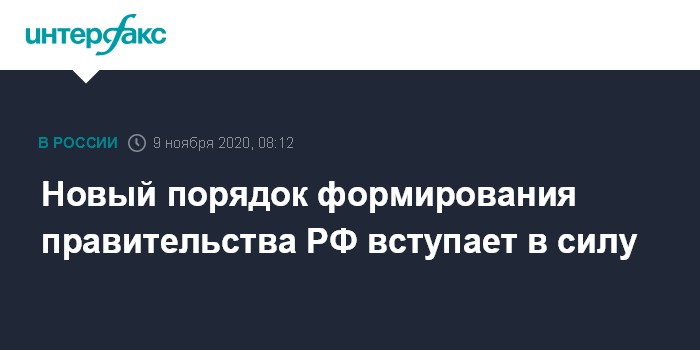 Москва. 9 ноября. INTERFAX.RU - Новый порядок формирования правительства, который утвержден подписанным в пятницу федеральным конституционным законом, вступает в силу на фоне многочисленных слухов о перестановках в кабинете Михаила Мишустина. Вполне вероятно, что уже в понедельник Госдуме предстоит впервые исполнить свою новую конституционную функцию - утвердить новых министров.