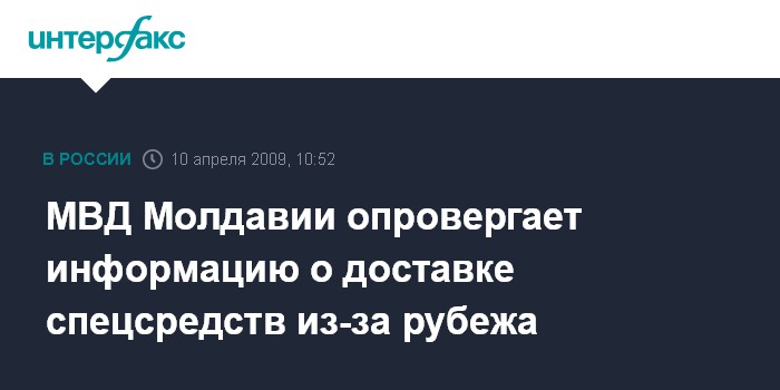 Москва. 10 апреля. INTERFAX.RU - МВД Молдавии опровергло информацию о том, что в Кишинев доставлены из-за границы спецсредства для пресечения массовых беспорядков.