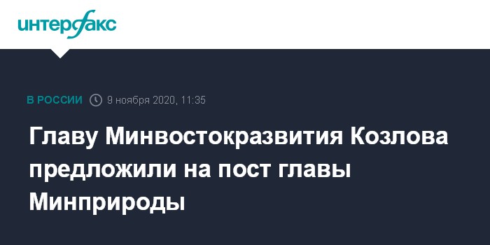 Главу Минвостокразвития Козлова предложили на пост главы Минприроды