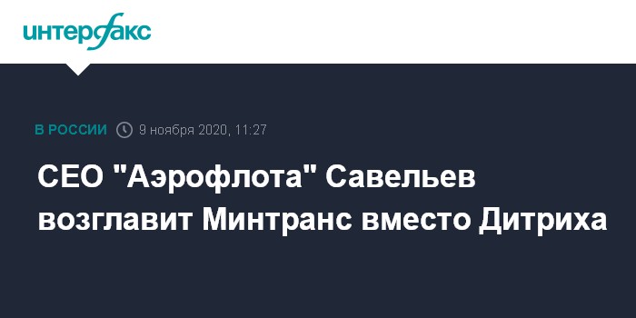 СЕО "Аэрофлота" Савельев возглавит Минтранс вместо Дитриха