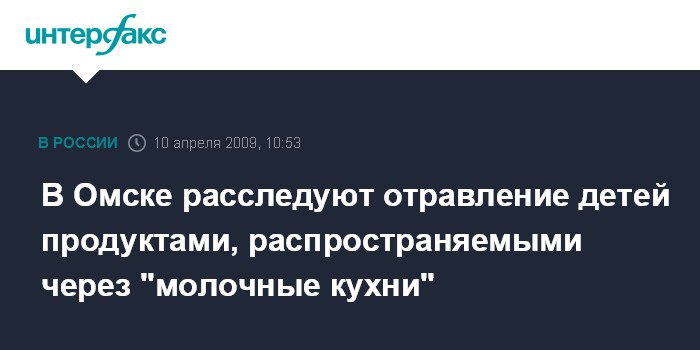 Москва. 10 апреля. INTERFAX.RU - Следственные органы СКП РФ по Омской области возбудили уголовное дело по факту отравления детей молочной продукцией.