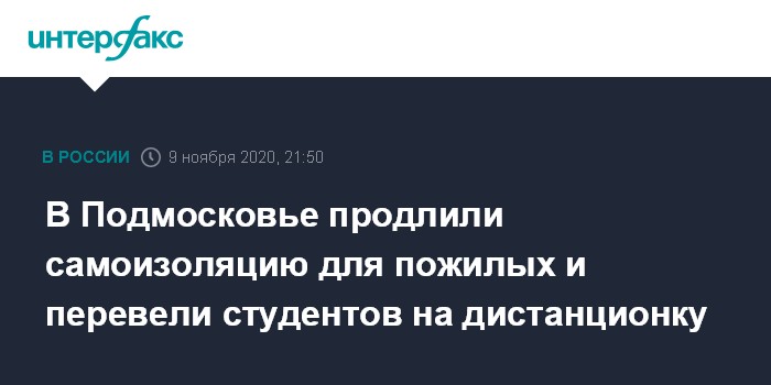 В Подмосковье продлили самоизоляцию для пожилых и перевели студентов на дистанционку