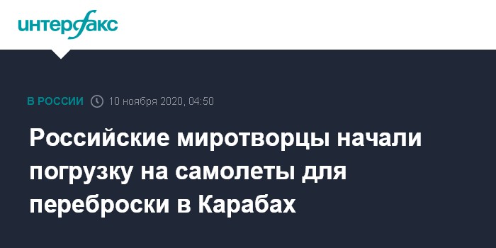 "Миротворческие подразделения в составе колонн совершили марш своим ходом и приступили к погрузке техники и вооружения в самолеты военно-транспортной авиации для убытия в район выполнения задач по контролю за прекращением огня и военных действий в зоне нагорно-карабахского конфликта", – сообщили в Минобороны РФ.