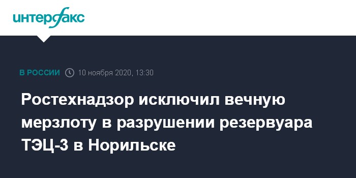 Москва. 10 ноября. INTERFAX.RU - Причиной аварии на ТЭЦ-3 Норильской топливно-энергетической компании (НТЭК, входит в группу "Норникель") по предварительным данным стали технические и организационные нарушения на этапах строительства и эксплуатации разрушенного резервуара. Об этом говорится в сообщении Енисейского управления Ростехнадзора.