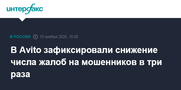 Москва. 10 ноября. INTERFAX.RU - Число жалоб пользователей Avito на действия мошенников в службу поддержки сервиса объявлений в октябре упало в три раза по сравнению с июлем, сообщил "Коммерсантъ" со ссылкой на директора подразделения Trust & Safety компании Андрея Рыбинцева.
