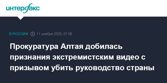 Прокуратура Алтая добилась признания экстремистским видео с призывом убить руководство страны