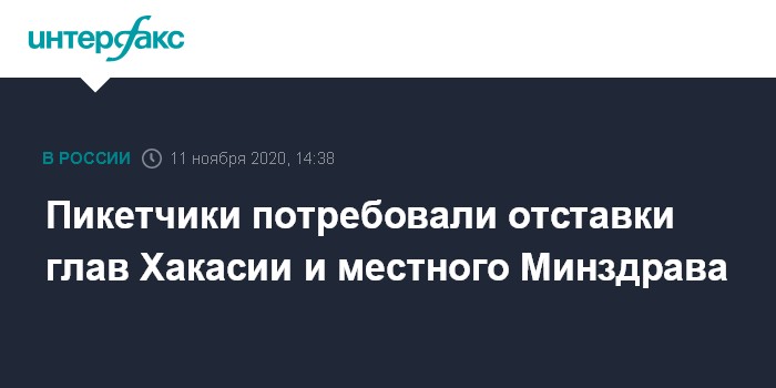 "11 ноября на площадь перед домом правительства Хакасии трое граждан действительно выходили на одиночные пикеты, примерно в течение 15 минут. Одиночный пикет является одной из легальных форм выражения мнения, главное, что он проходит в соответствии с законом и актуальными на сегодня санитарно-эпидемиологическими требованиями. Следить за их соблюдением, а также за соблюдением законности проведения пикетов - полномочия контрольно-надзорных и правоохранительных органов", - сказала "Интерфаксу" руководитель пресс-службы главы и правительства Хакасии Яна Тамаровская.
