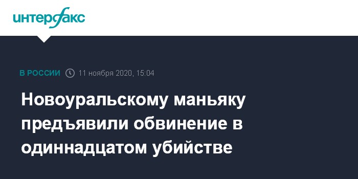 "В Республике Башкортостан серийному убийце из Новоуральска предъявлено обвинение в убийстве 11-й жертвы, совершенном в 2001 году", - говорится в пресс-релизе.