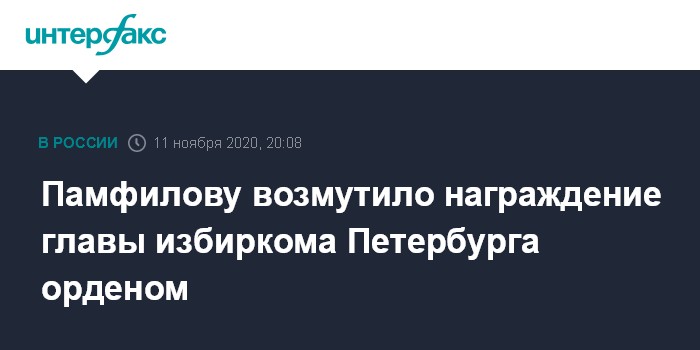 Памфилову возмутило награждение главы избиркома Петербурга орденом