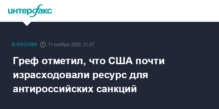 Греф отметил, что США почти израсходовали ресурс для антироссийских санкций
