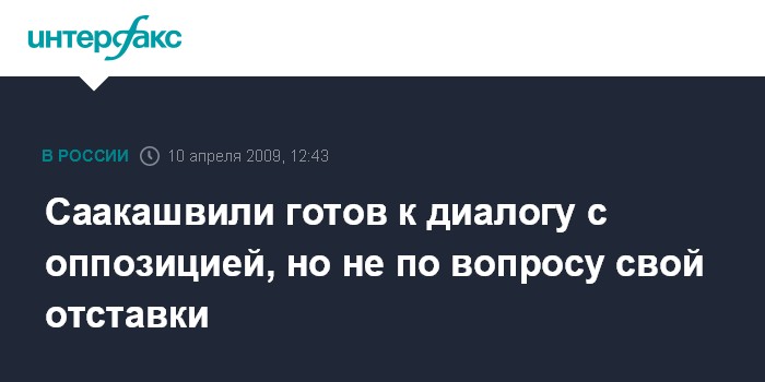 Москва. 10 апреля. INTERFAX.RU - Президент Грузии Михаил Саакашвили заявил, что готов к диалогу с представителями оппозиции, но вопрос его отставки обсуждать не будет. "Сегодня, когда нашим гражданам тяжело, у нас просто нет иной альтернативы диалогу, и сейчас время, когда мы должны сесть и вместе обсудить все вопросы", - сказал Саакашвили в пятницу в Тбилиси.