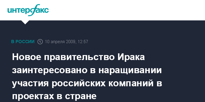 Нури аль-Малики подчеркнул, что иракская сторона "уверена в российских компаниях, которые обладают широким опытом взаимодействия" с иракскими партнерами. "Они уже ведут работы на территории Ирака, но мы заинтересованы в том, чтобы это участие расширялось и наращивалось", - заявил иракский премьер.
