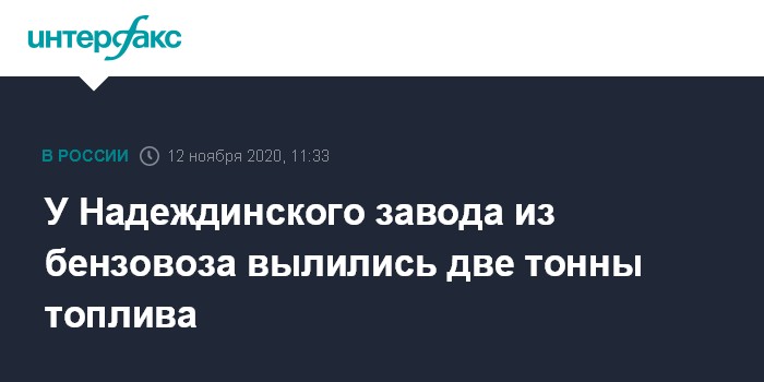 У Надеждинского завода из бензовоза вылились две тонны топлива