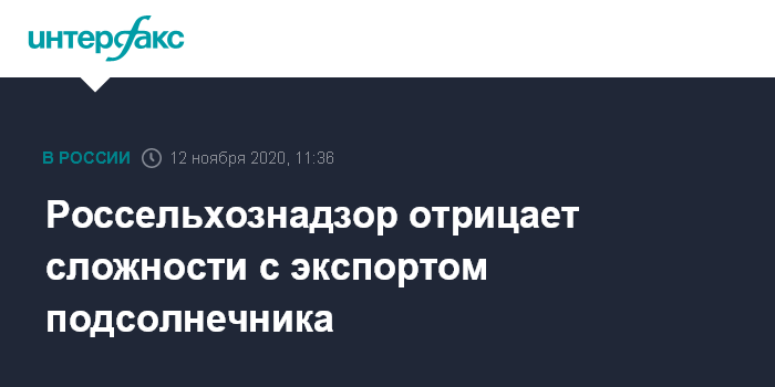 Москва. 12 ноября. INTERFAX.RU - Россельхознадзор не заметил сложностей с экспортом подсолнечника, фитосанитарные сертификаты экспортерам выдаются в рабочем режиме, заявила служба. Так там прокомментировали публикацию "Коммерсанта" о том, что территориальные органы службы стали затягивать выдачу этих документов.