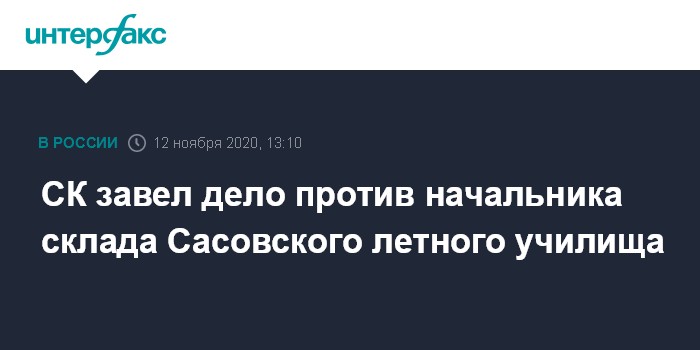 Москва. 12 ноября. INTERFAX.RU - Уголовное дело по статье "Халатность" возбуждено против начальника склада Сасовского летного училища гражданской авиации – филиала ФГБОУ ВО "Ульяновский институт гражданской авиации". Об этом сообщила в четверг пресс-служба Московского межрегионального следственного управления на транспорте СКР.