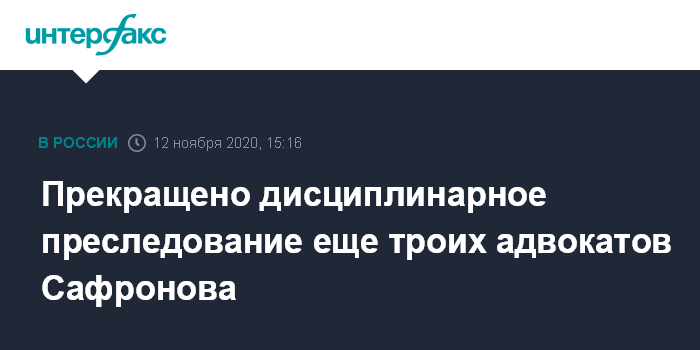 Прекращено дисциплинарное преследование еще троих адвокатов Сафронова