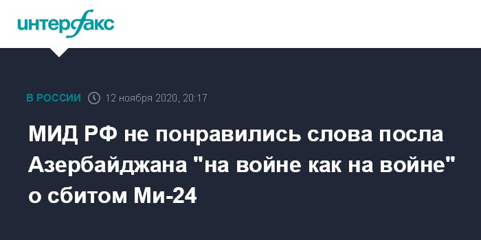 МИД РФ не понравились слова посла Азербайджана "на войне как на войне" о сбитом Ми-24
