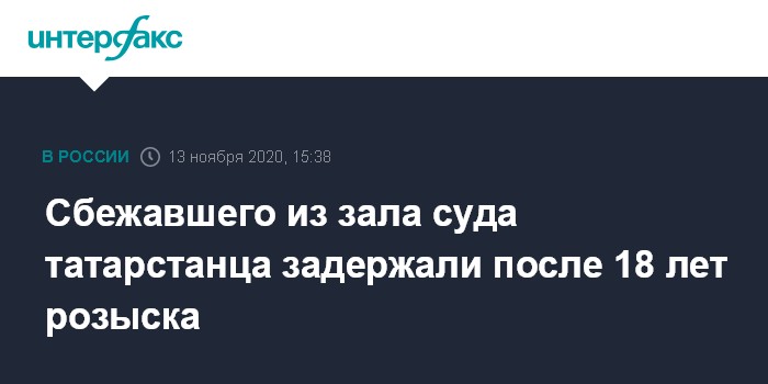 Сбежавшего из зала суда татарстанца задержали после 18 лет розыска