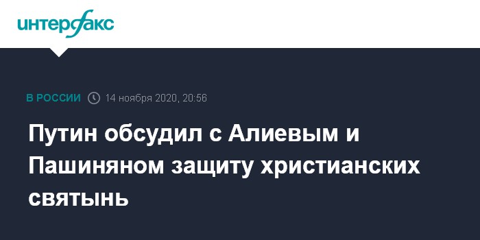 Путин обсудил с Алиевым и Пашиняном защиту христианских святынь