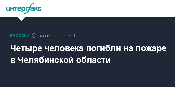 Москва. 15 ноября. INTERFAX.RU - Семья из четырех человек, в том числе ребенок, погибли утром в воскресенье на пожаре в частном доме в Пласте (Челябинская область), сообщает пресс-служба регионального ГУ МЧС.