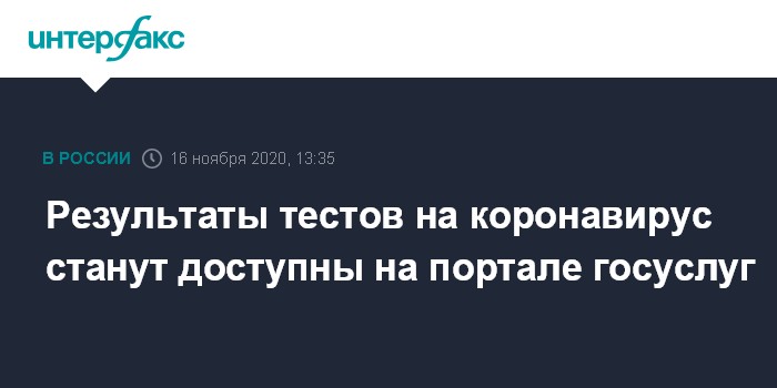 Москва. 16 ноября. INTERFAX.RU - Результаты тестов на коронавирус скоро можно будет получать на портале госуслуг, сообщила глава Роспотребнадзора Анна Попова на заседании президиума координационного совета по борьбе с COVID-19.