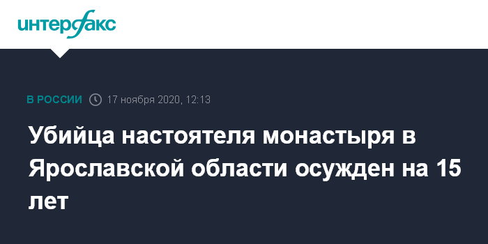 Убийца настоятеля монастыря в Ярославской области осужден на 15 лет
