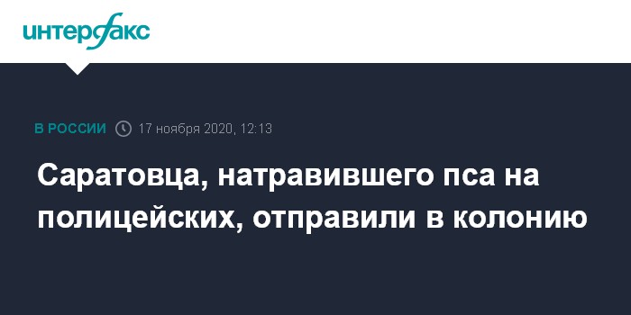 Москва. 17 ноября. INTERFAX.RU - Фрунзенский районный суд Саратова вынес приговор 41-летнему местному жителю, натравившему пса на полицейских, сообщается на сайте следственного управления СКР по региону во вторник.