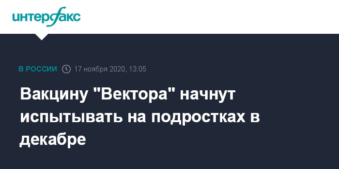 Москва. 17 ноября. INTERFAX.RU - Клинические исследования вакцины от коронавируса центра "Вектор" на детях от 14 до 17 лет должны начаться в декабре, сообщил гендиректор государственного научного центра "Вектор" Ринат Максютов.