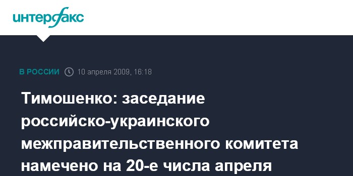 Тимошенко: заседание российско-украинского межправительственного комитета намечено на 20-е числа апреля