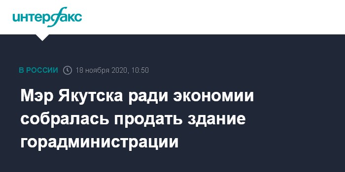 Москва. 18 ноября. INTERFAX.RU - Главное здание администрации Якутска, которое находится в самом центре города, выставят на продажу, чтобы сэкономить бюджетные средства на его содержание, сообщила мэр города Сардана Авксентьева в инстаграме.
