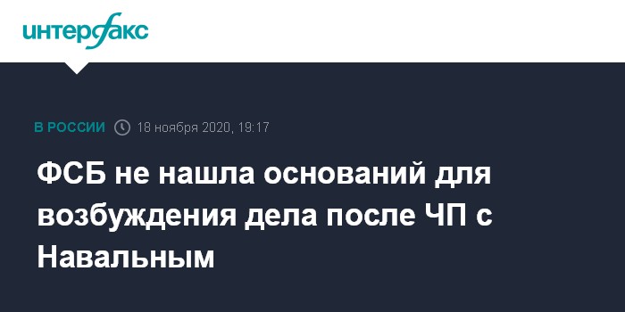 Москва. 18 ноября. INTERFAX.RU - ФСБ России не видит оснований для принятия процессуальных решений в связи с заявлением Фонда борьбы с коррупцией (ФБК) о возбуждении уголовного дела по факту разработки и производства химоружия в связи с якобы отравлением оппозиционера Алексея Навального, сообщает юридическая служба ФБК.