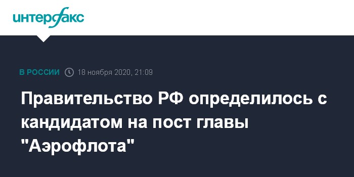 Правительство РФ определилось с кандидатом на пост главы "Аэрофлота"