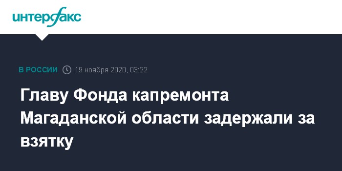 Москва. 19 ноября. INTERFAX.RU - Исполняющий обязанности генерального директора "Фонда капитального ремонта Магаданской области" задержан по уголовному делу о коммерческом подкупе, сообщило следственное управление СКР по региону.