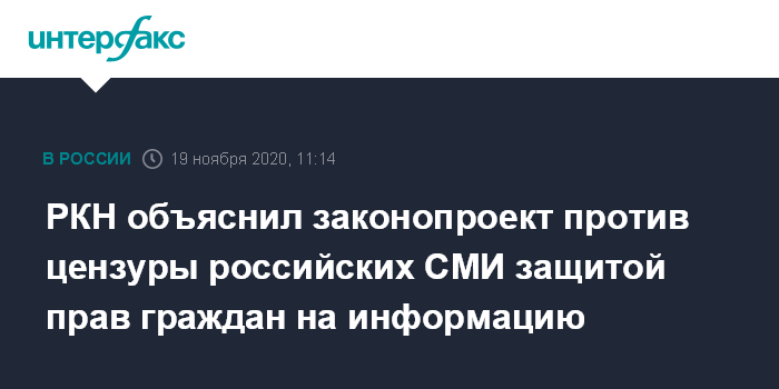 РКН объяснил законопроект против цензуры российских СМИ защитой прав граждан на информацию