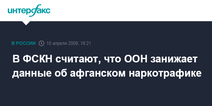 Москва. 10 апреля. INTERFAX.RU - Российские спецслужбы обвиняют структуры ООН в занижении данных о наркотрафике из Афганистана.