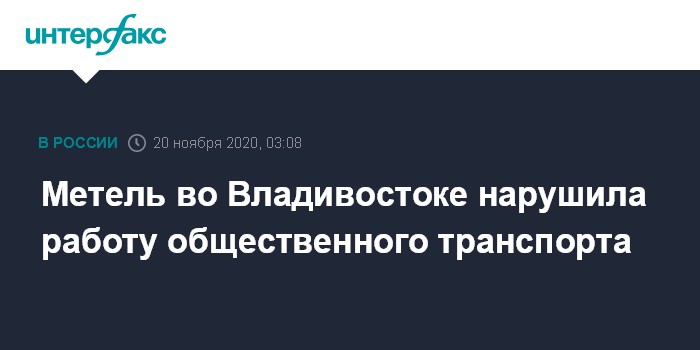 Москва. 20 ноября. INTERFAX.RU - Метель и сильный ветер продолжаются во Владивостоке вторые сутки, движение трамваев и троллейбусов остановлено, движение автобусов затруднено.
