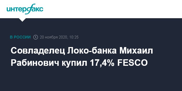 Совладелец Локо-банка Михаил Рабинович купил 17,4% FESCO