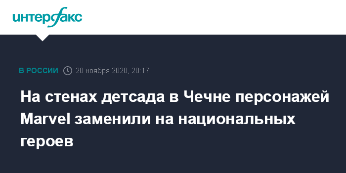Москва. 20 ноября. INTERFAX.RU - Изображения американских супергероев Marvel заменили в детском игровом центре в Курчалое после замечания главы Чечни Рамзана Кадырова.