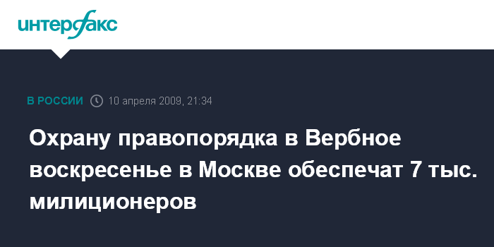 Охрану правопорядка в Вербное воскресенье в Москве обеспечат 7 тыс. милиционеров