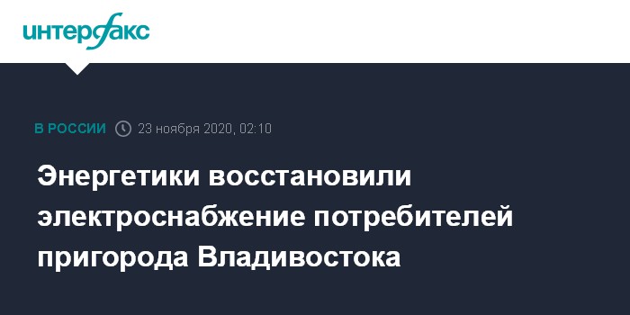 Москва. 23 ноября. INTERFAX.RU - Энергетики восстановили электроснабжение потребителей пригорода Владивостока в районе бухты Лазурная и поселка Емар.