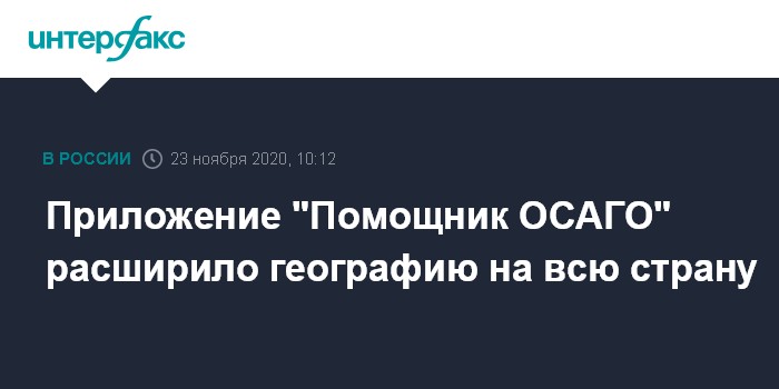 Одновременно расширяется география применения "Помощника ОСАГО" на всю страну. Запущенное с 1 ноября 2019 года приложение сначала работало в пяти пилотных регионах - в Москве, Московской области, Санкт-Петербурге, Ленинградской области и Татарстане. Работа "Помощника ОСАГО" в рамках пилотного проекта была признана успешной.