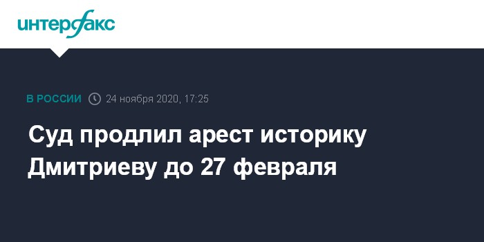 Суд продлил арест историку Дмитриеву до 27 февраля
