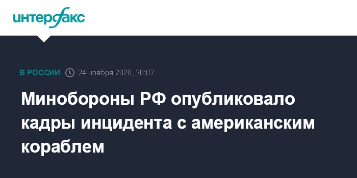 Москва. 24 ноября. INTERFAX.RU - Минобороны России обнародовало видео сегодняшнего инцидента в Японском море, во время которого американский эсминец вошел в территориальные воды РФ.