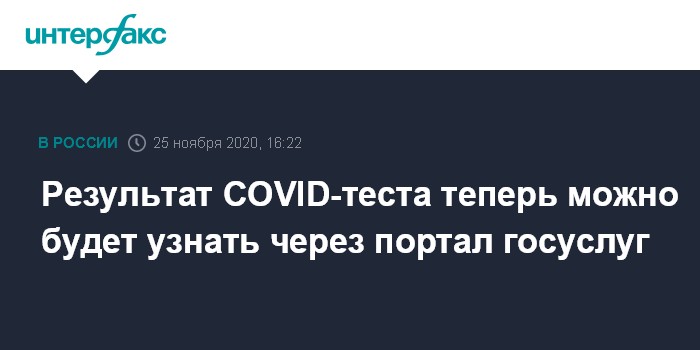 Результат COVID-теста теперь можно будет узнать через портал госуслуг