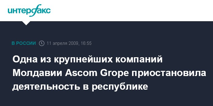Москва. 11 апреля. INTERFAX.RU - Один из крупнейших молдавских холдингов - группа компаний Ascom Grope - приостановила деятельность в республике, сообщили "Интерфаксу" источники, близкие к руководству компании.