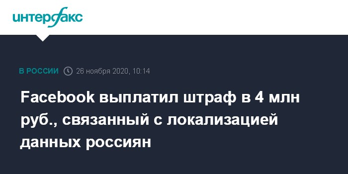 Facebook выплатил штраф в 4 млн руб., связанный с локализацией данных россиян