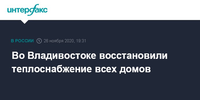 Москва. 26 ноября. INTERFAX.RU - Энергетики восстановили подачу тепла во все дома Владивостока, сообщило Минэнерго.