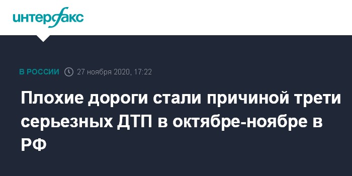 Плохие дороги стали причиной трети серьезных ДТП в октябре-ноябре в РФ