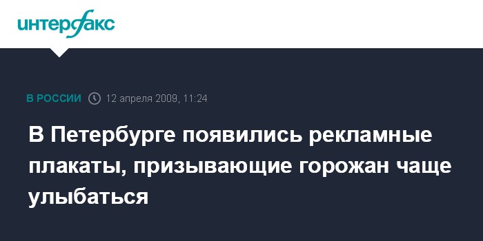Санкт-Петербург. 12 апреля. INTERFAX.RU - В Петербурге на этой неделе стартовала рекламная акция "Просто улыбнись", призывающая горожан радостнее относиться к жизни и чаще улыбаться.