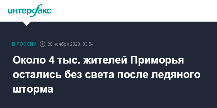 Москва. 28 ноября. INTERFAX.RU - Электроснабжение в Приморском крае после циклона и ледяного дождя в целом восстановлено, без света остаются около 4 тыс. человек, сообщает пресс-служба правительства региона.